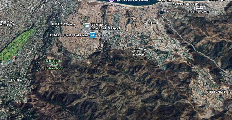Overview of Pacific Palisades after the fire of Jan 7, 2025