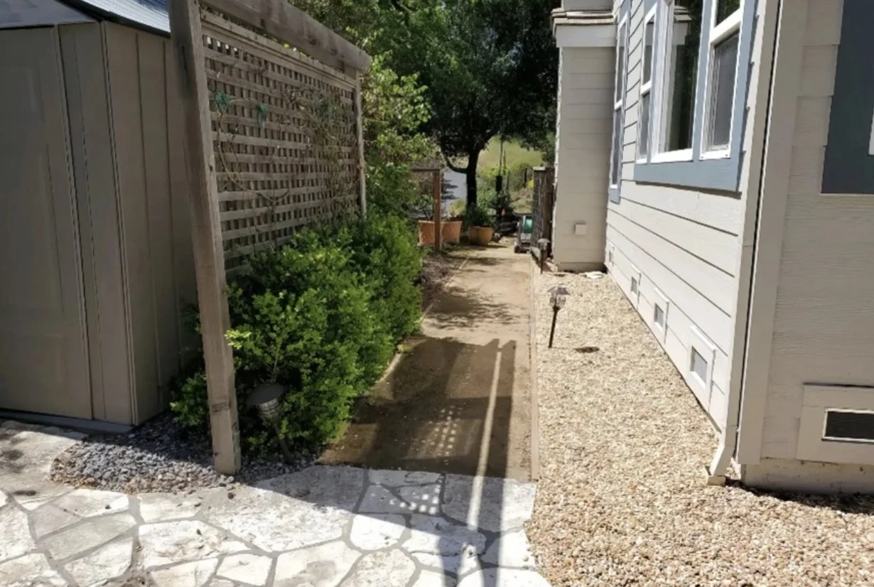 Remove ALL vegetation, trees including overhanging branches, grass/turf, wood/rubber mulch, and any combustible stored items within 5 feet of the structure.
